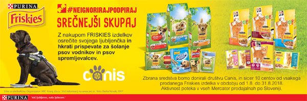 Z nakupom FRISKIES izdelkov osrečite svojega ljubljenčka in hkrati prispevajte za šolanje psov vodnikov in psov spremljevalcev.